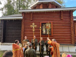 Первый молебен в дальнем гарнизоне перед образом святого великомученика Георгия отслужен на месте закладки фундамента часовни 26 мая 2019 года, помощником командира части по работе с верующими военнослужащими священником Ковровского благочиния протоиереем Константином Тищенко.